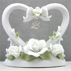 This elegant fine porcelain 25th Anniversary wedding heart features bunches of delicate white handmade roses in bloom. A perfect addition for your guestbook table, or to crown the top of your cake. Handpainted.