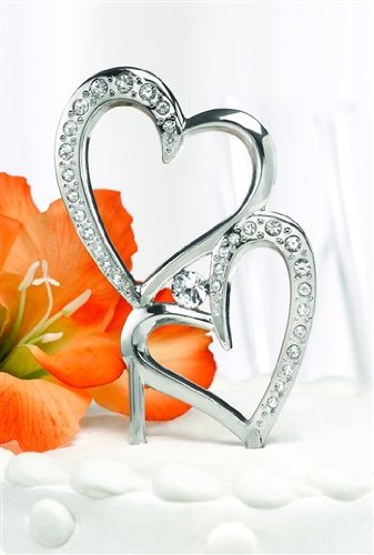- Nickel-plated cake pick with double heart design, sparkling rhinestone accents and a large center rhinestone