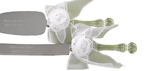 - Cake and knife serving set that adds romance to a wedding reception, anniversary party, or Valentine's Dinner